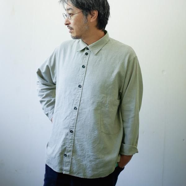 Lsize _ remilla R253404 ヒトエラウンドシャツ ◆ REMILLA レミーラ : 長袖ヒトエツイルシャツ Light Olive