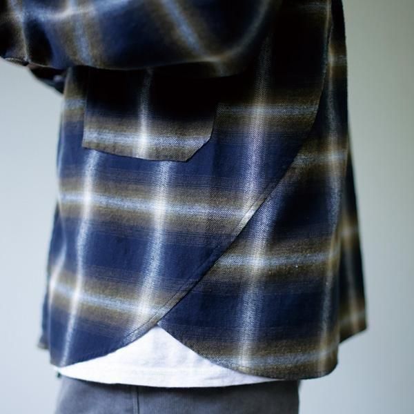 布がどんな風に肩から垂れ下がったら気持ちいいか、脇の縫い目をどんな作りで無くすかを想像し製作され、仕草の中にその人の面持ちある雰囲気を感じさせるアイテムをイメージしています。